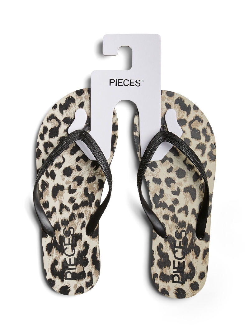 En flipflop från Pieces med leopardmönster.