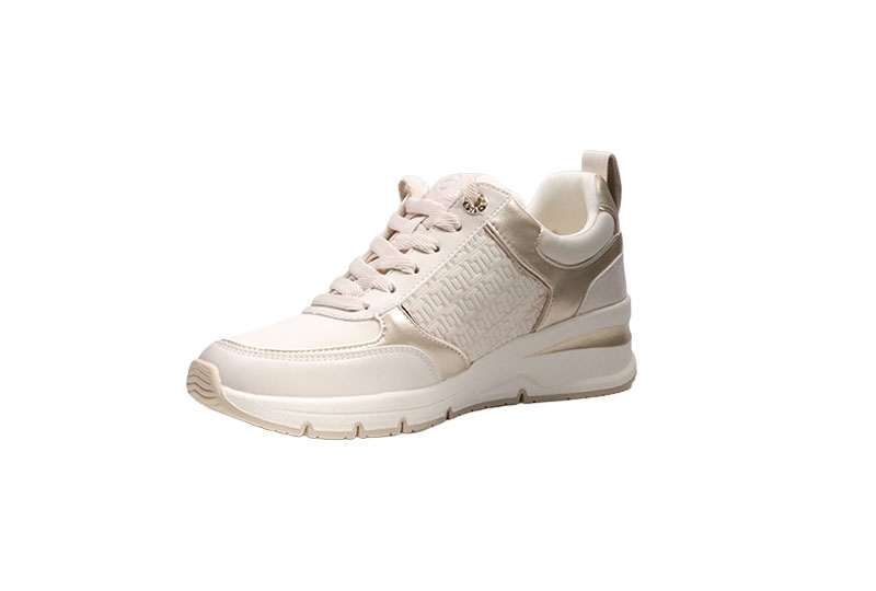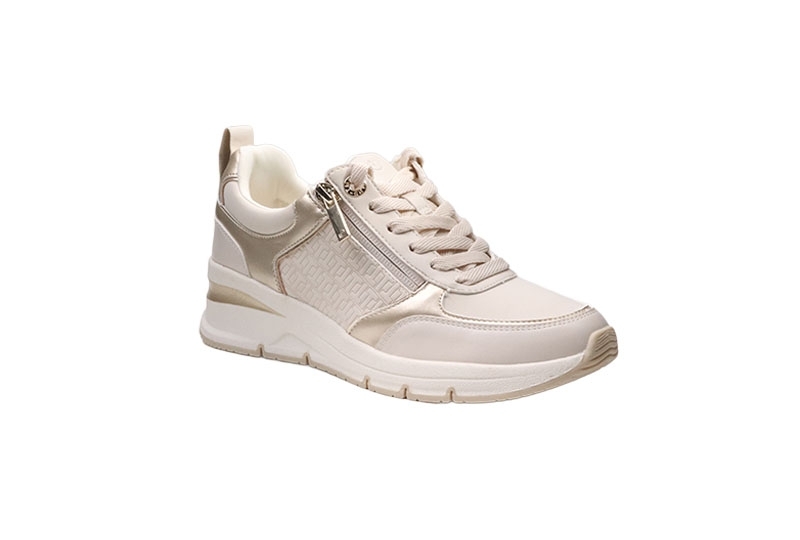 Denna snygga sneaker från Tamaris är den perfekta mixen av stil och komfort. Den eleganta beige färgen med unika strukturer och lyxiga gulddetaljer lyfter varje outfit. En trendig kilklack på 5 cm ger ett smickrande lyft, medan skafthöjden på 7 cm ger en stilsäker siluett.